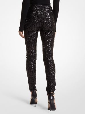 Paillette Embroidered Stretch Jersey Zip Leggings Michael Kors