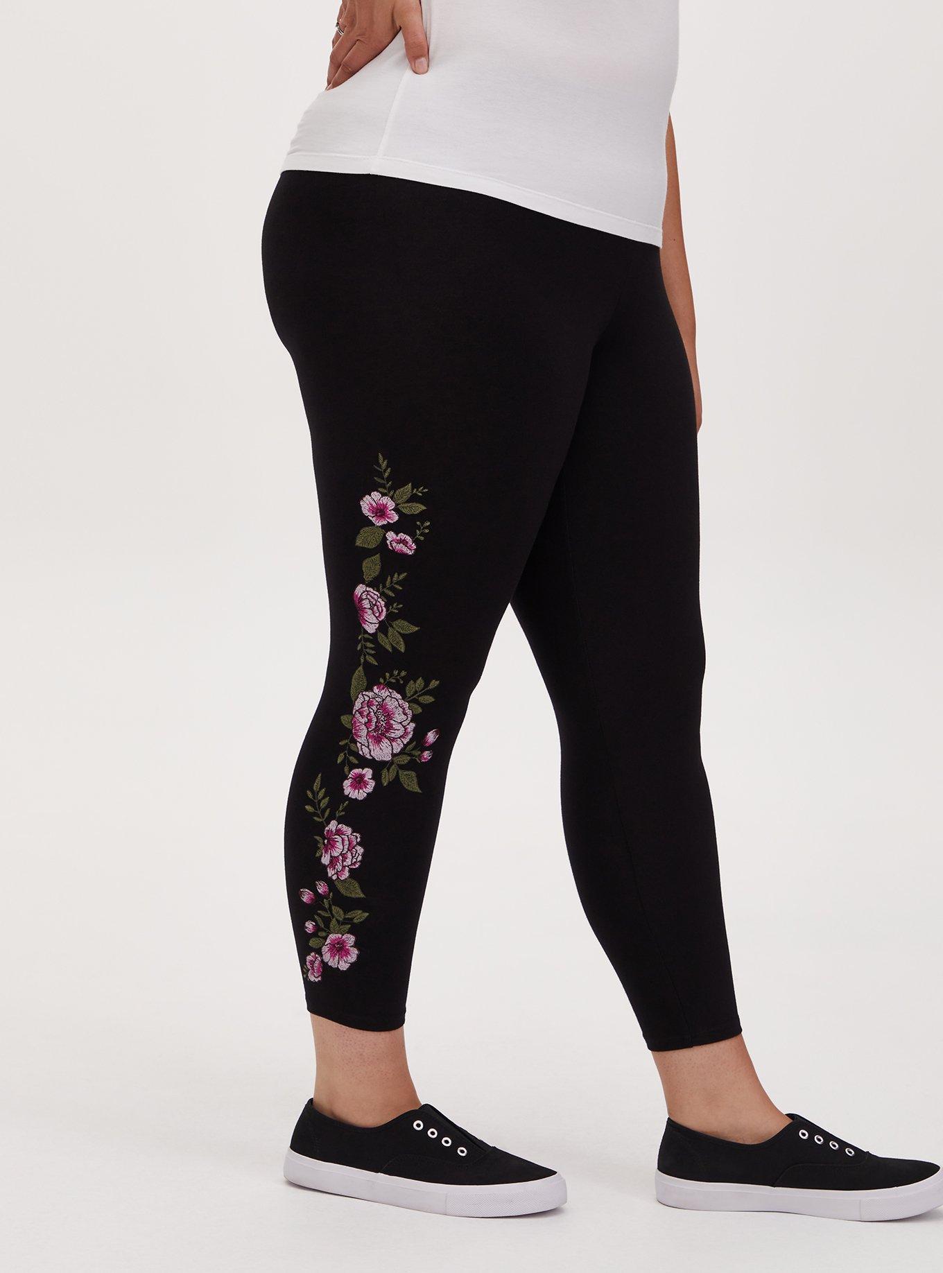 Plus Size Crop Premium Legging Embroidered Floral Black Torrid