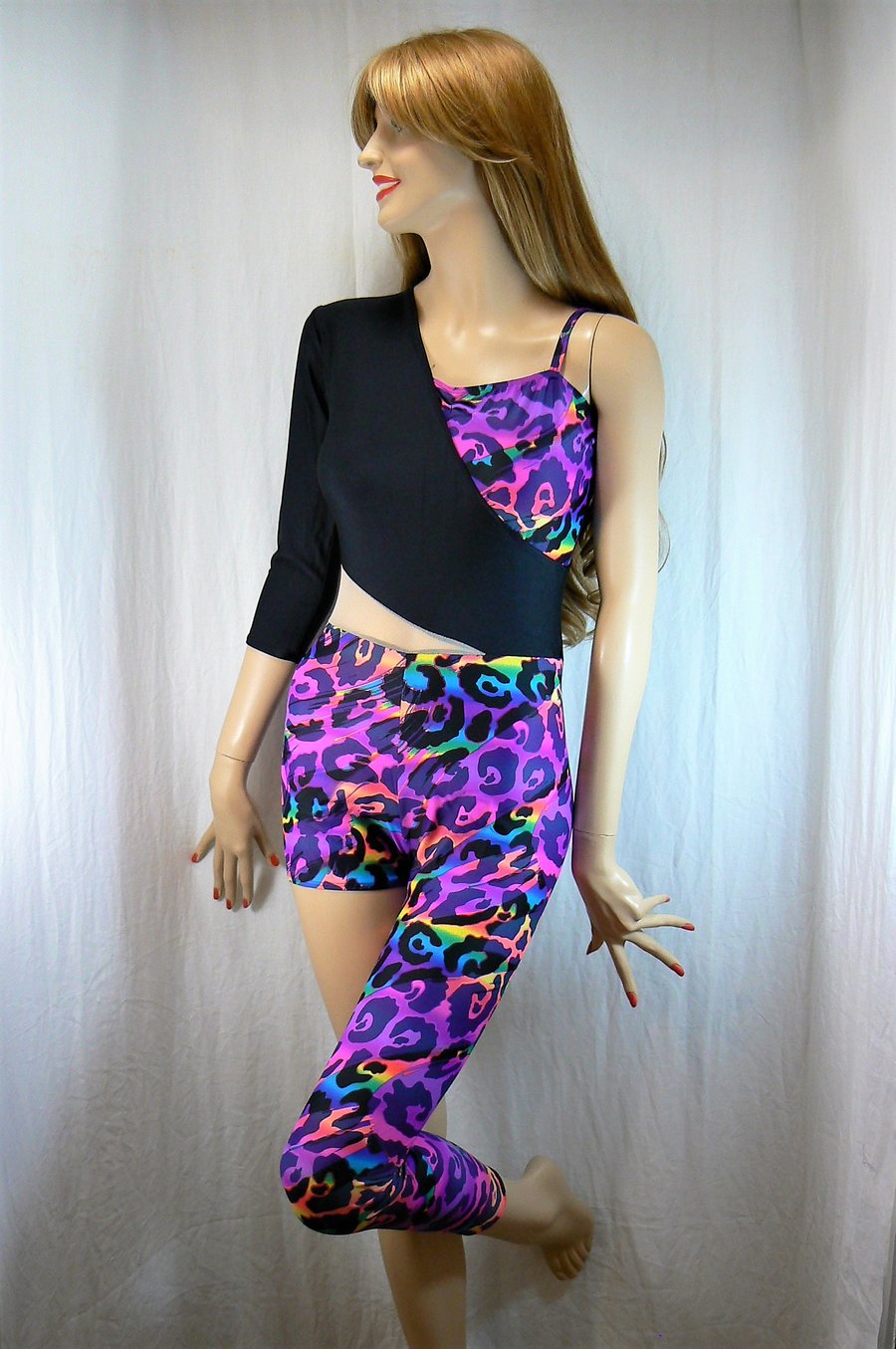 Leopard dance costume clearance, black and rainbow leopard print dance costume Folksy clearance