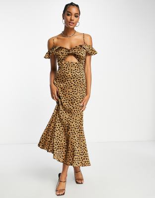 Never Fully Dressed frill sleeve cut out maxi dress in leopard