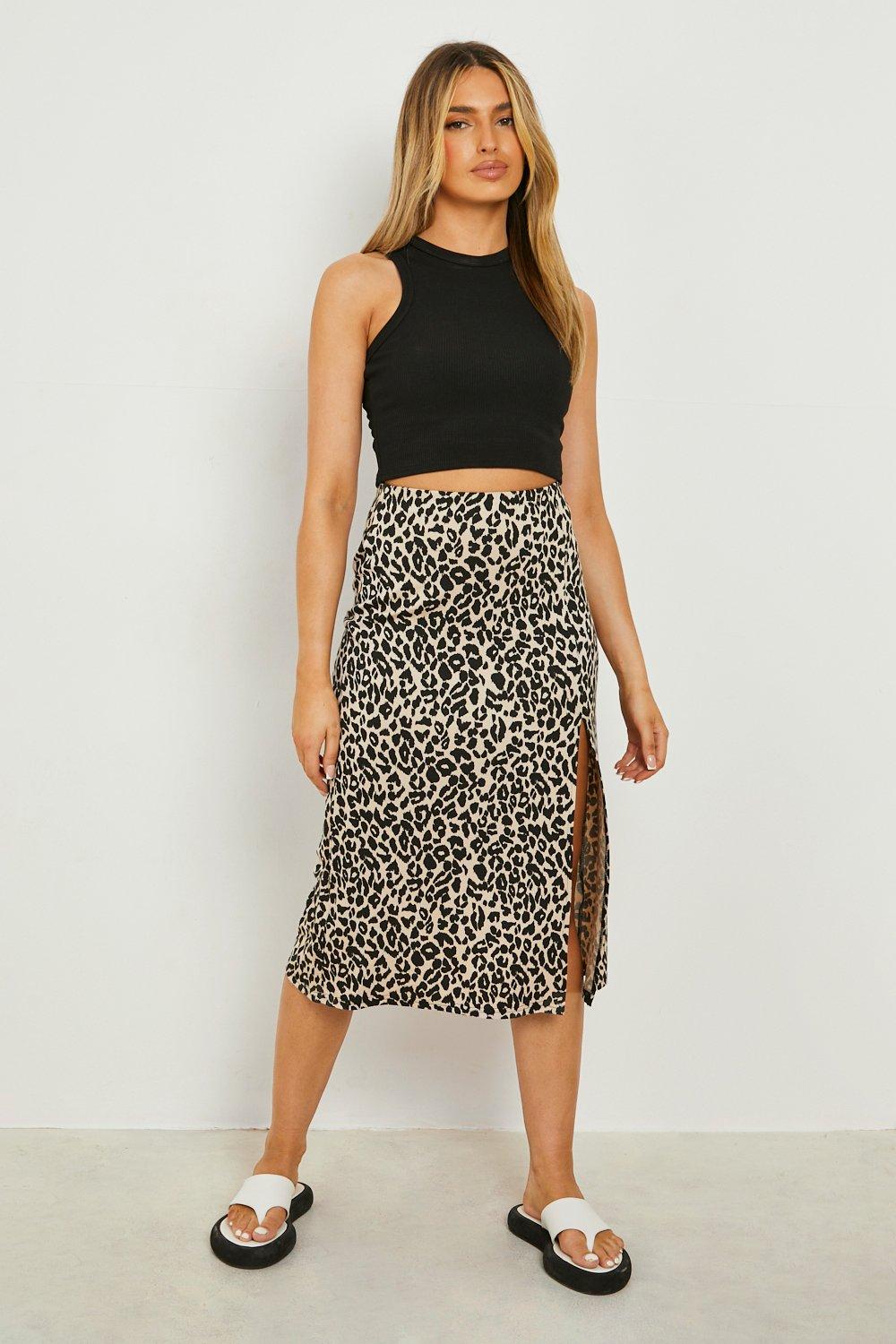 Leopard Printed Jersey Thigh Split Midi Skirt