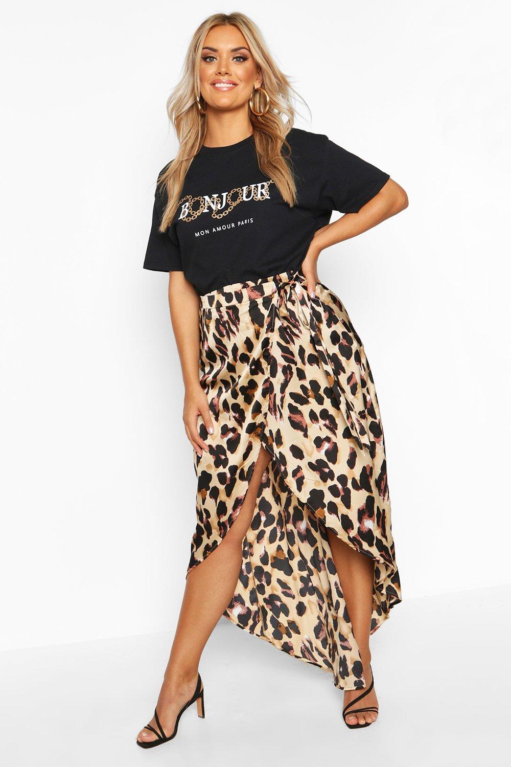 Plus Leopard Print Wrap Tie Waist Maxi Skirt
