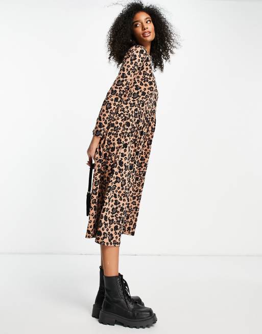 Leopard print midi dress asos clearance, ASOS DESIGN long sleeve smock midi dress with buttons in leopard print clearance