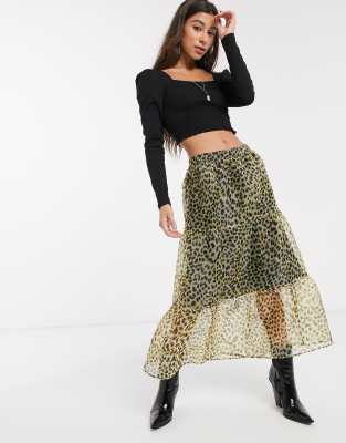Leopard print pleated midi skirt topshop clearance, Topshop organza midi skirt in leopard print ASOS clearance