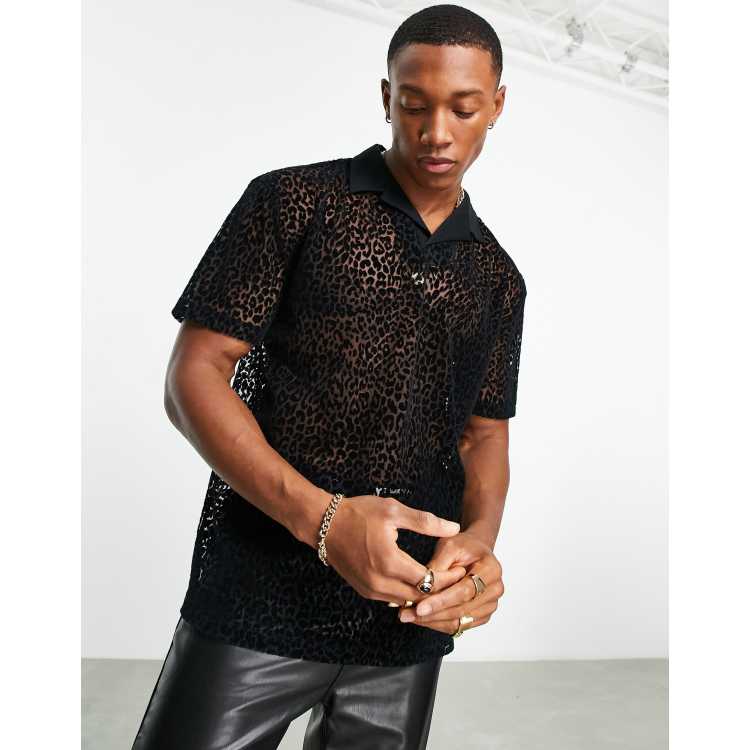 ASOS DESIGN polo shirt in sheer fabric with leopard flock print