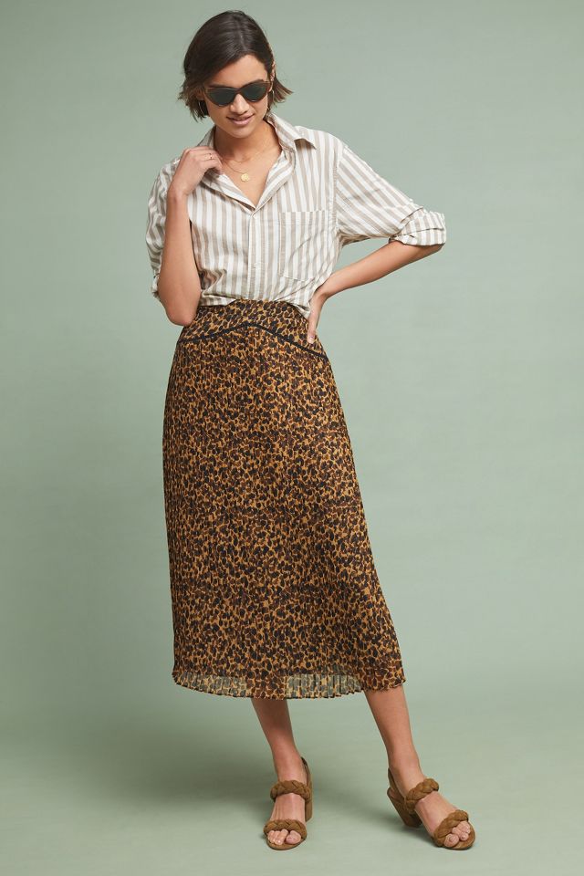 Pleated Leopard Midi Skirt