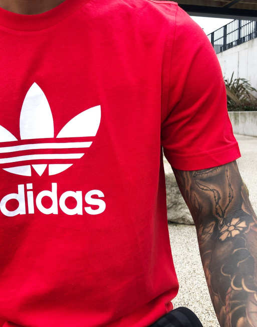 Adidas trefoil red t shirt clearance, adidas Originals Adidas Trefoil Tee Boxy Better Scarlet in Red Lyst clearance
