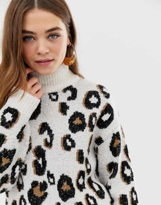 Leopard print turtleneck jumper clearance