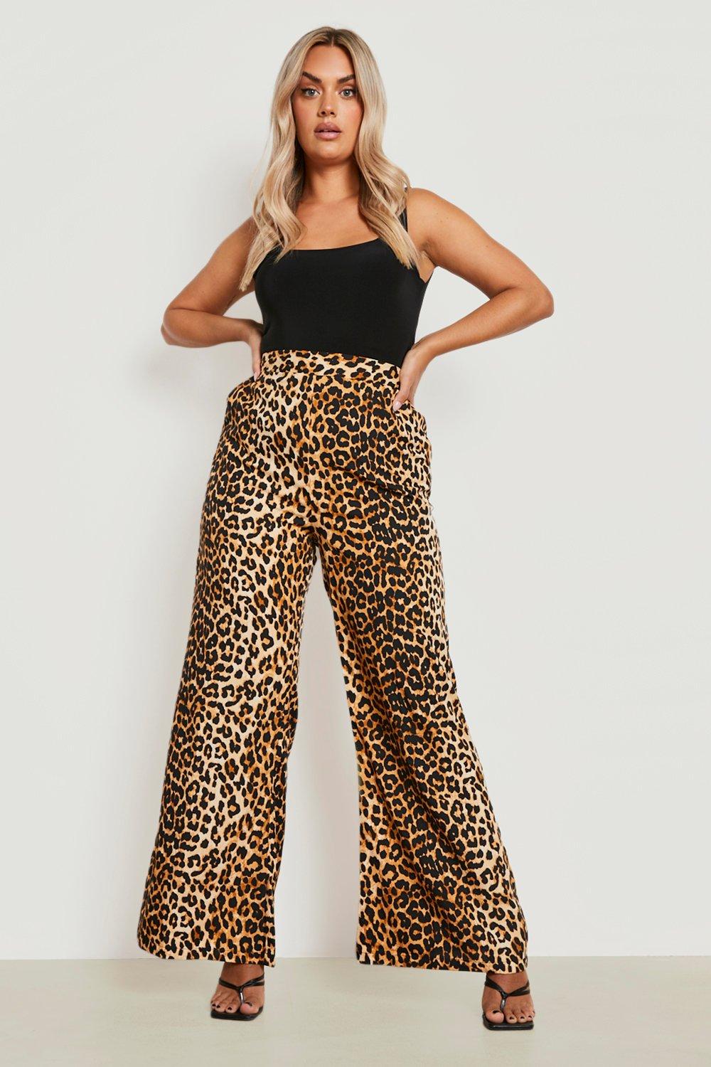 Plus Leopard Print Woven Wide Leg Trousers boohoo