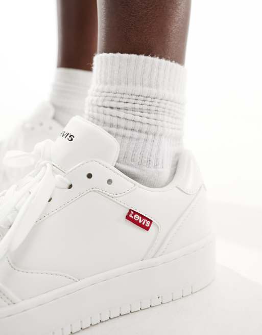 Levis adidas clearance, Levi s Paige leather trainer in white with red tab logo clearance