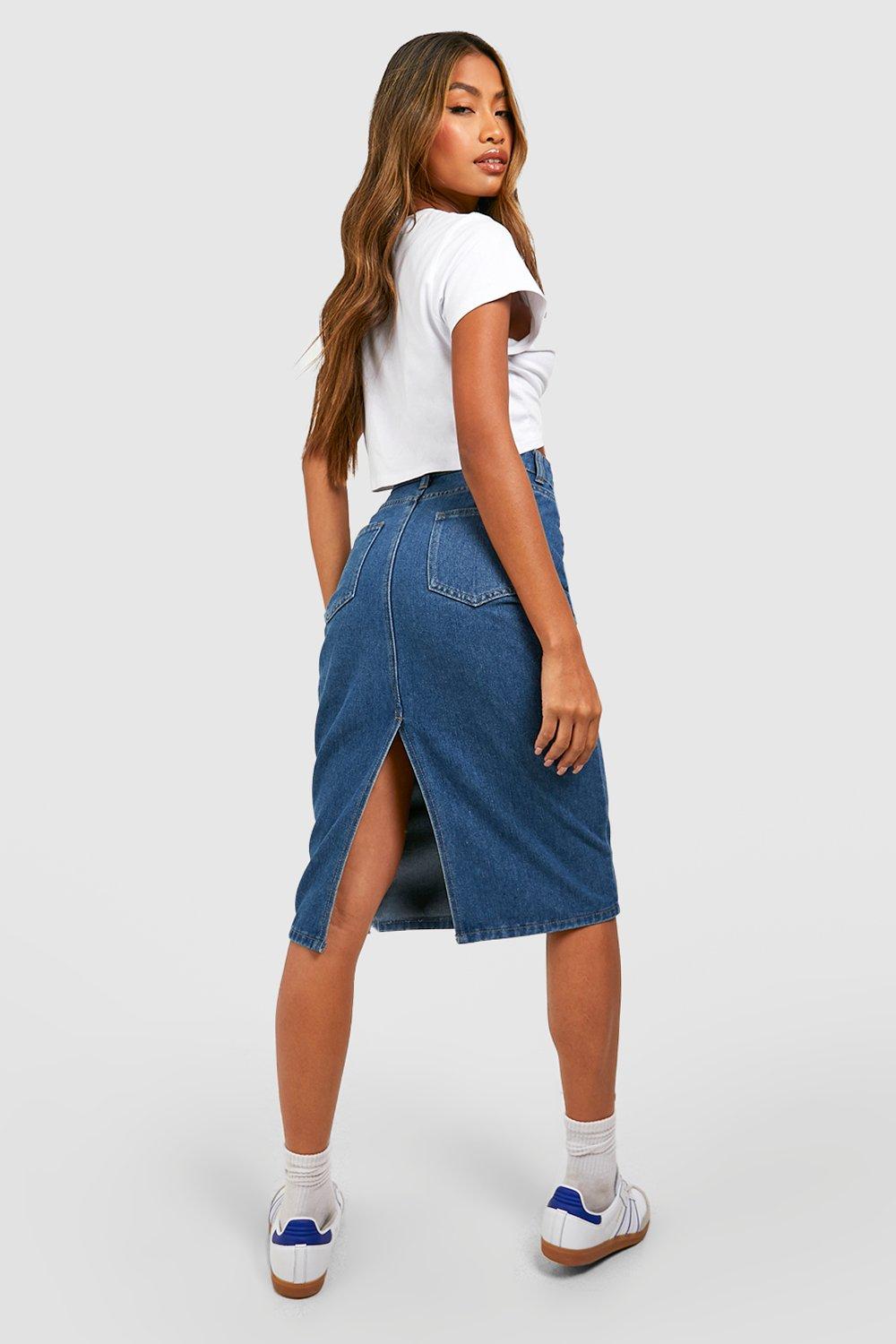 Levi's stretch denim skirt clearance, High Waisted Stretch Denim Midi Skirt boohoo clearance