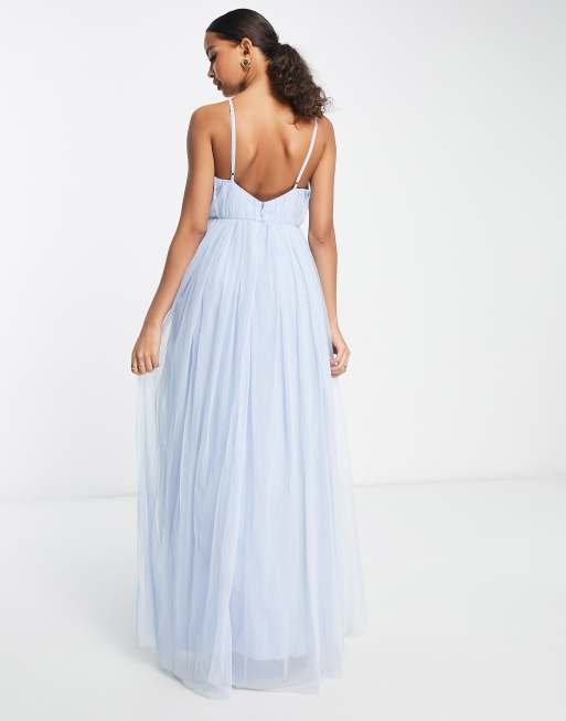 ASOS DESIGN Bridesmaid tulle chanelled bodice tulle maxi dress in light blue