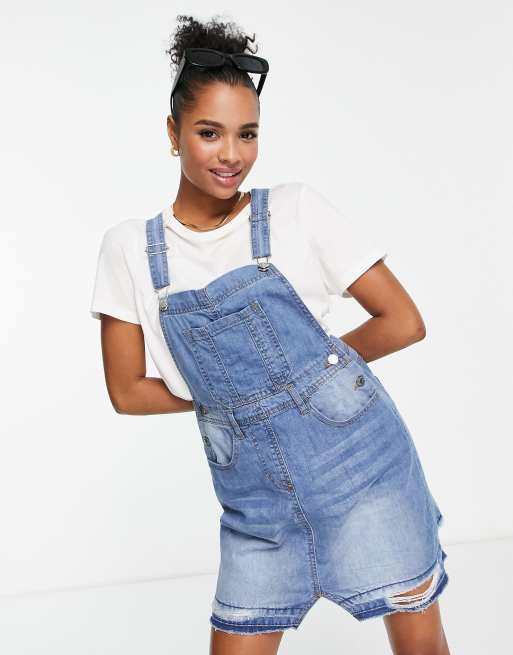 Womens girls Denim Dungaree Dress Dress Jean Pinafore Bib Overall Suspender Skir