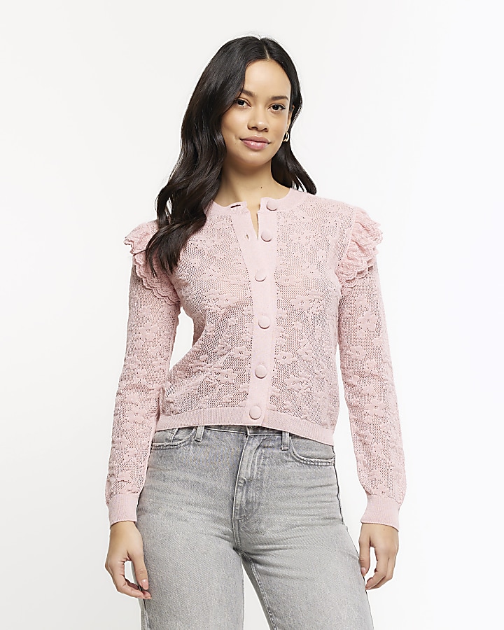Pink floral lace frill cardigan