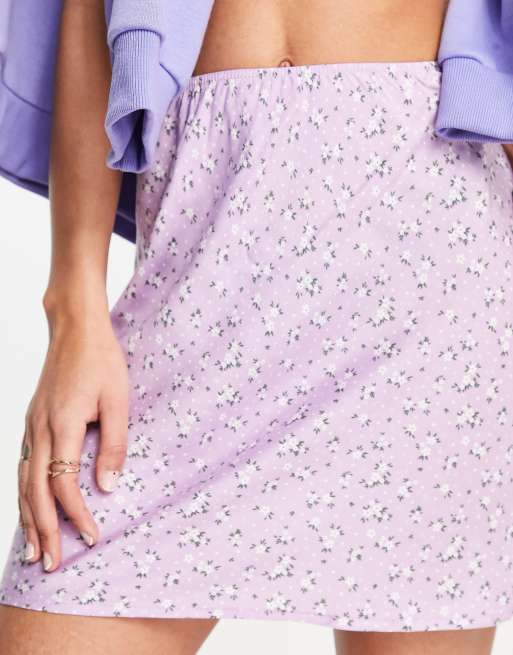 ASOS DESIGN mini slip skirt in lilac floral print