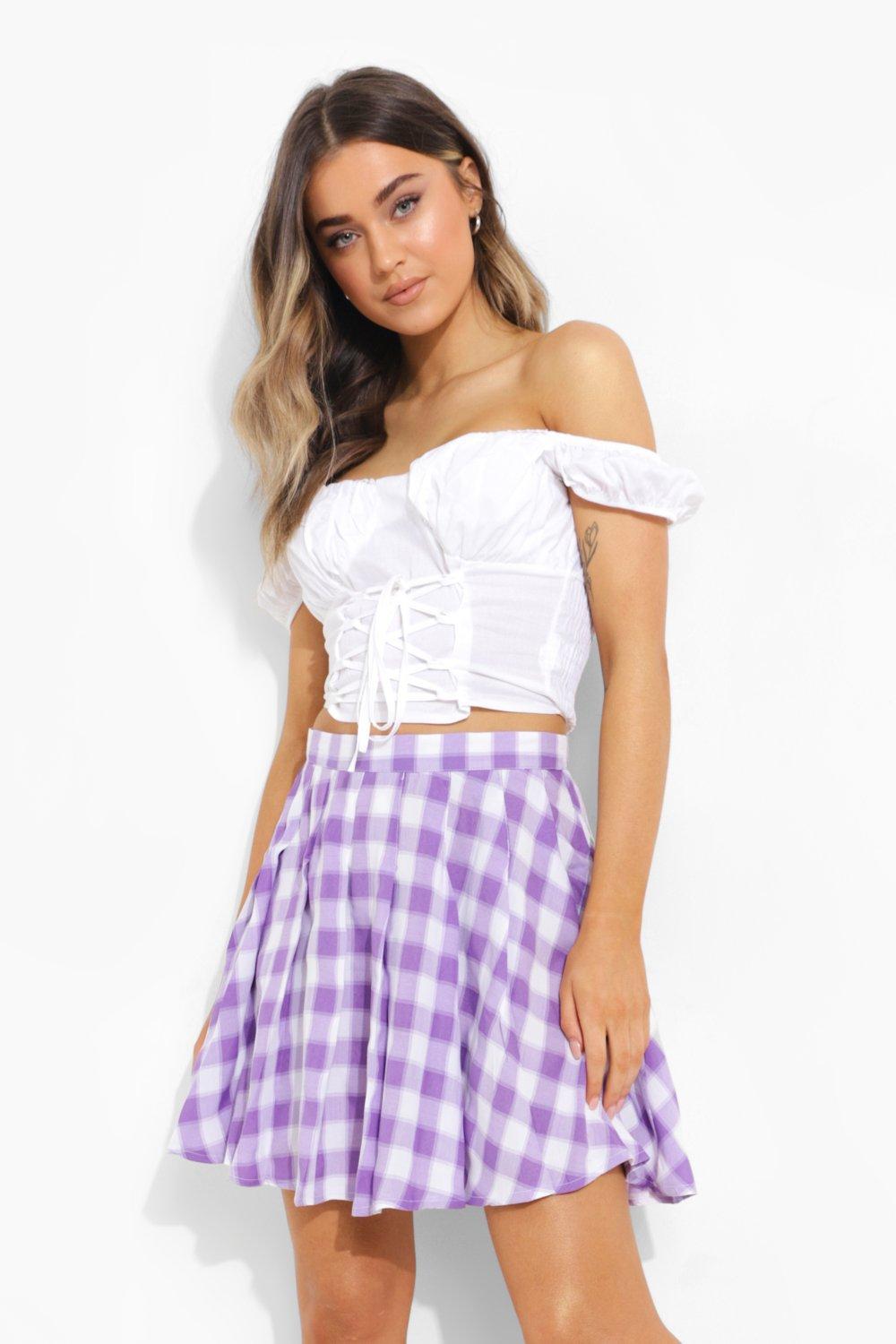 Women s Lilac Pleated Plaid Mini Skirt Boohoo UK