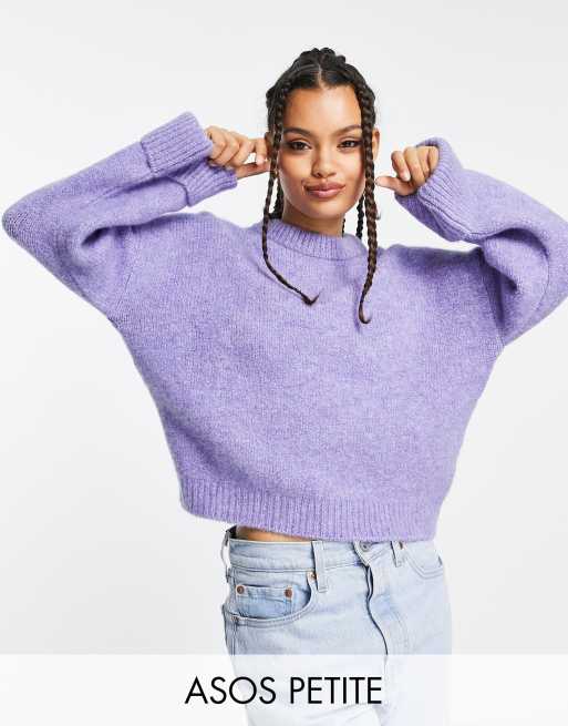 ASOS DESIGN Petite premium jumper with turn back cuff in wool blend yarn in lilac