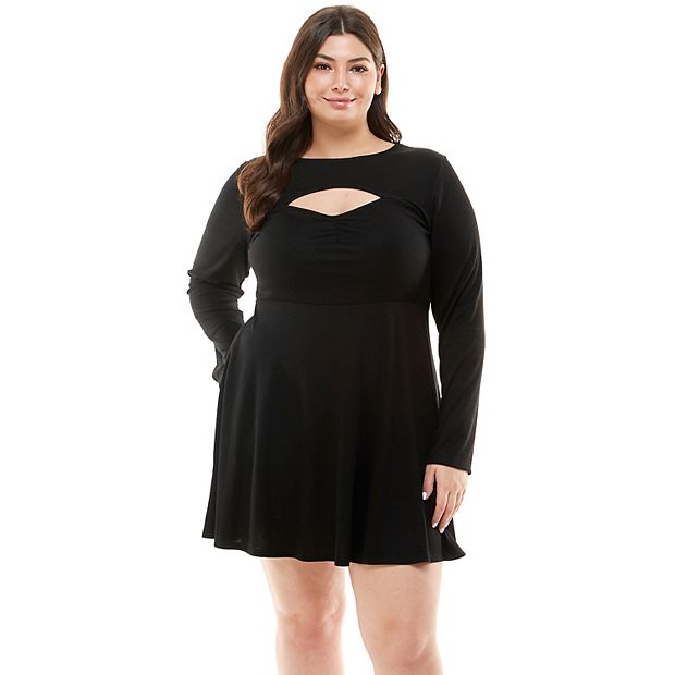 Juniors Plus Size Lily Rose Long Sleeve Cut Out Front Skater Dress