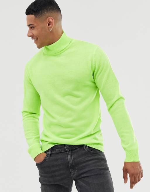 Brave Soul roll neck jumper in neon green