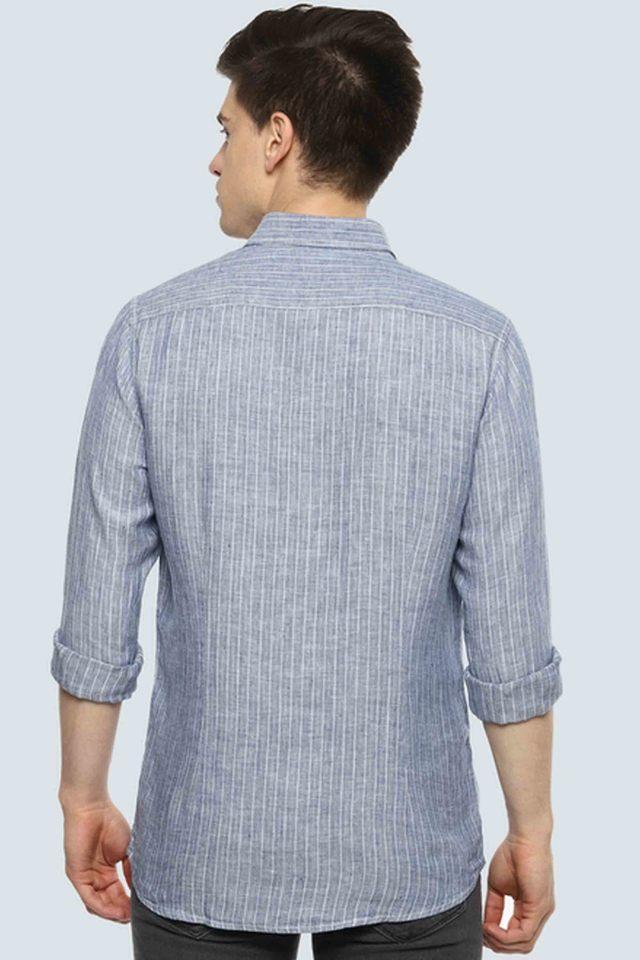 Louis Philippe Sport Blue Jermyn Tailored Fit Linen Casual Shirt