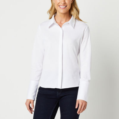 Liz Claiborne Knit Womens Long Sleeve Regular Fit Button Down