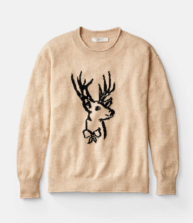 Loft Gray Reindeer Sweater Pullover Wool Blend Size Large