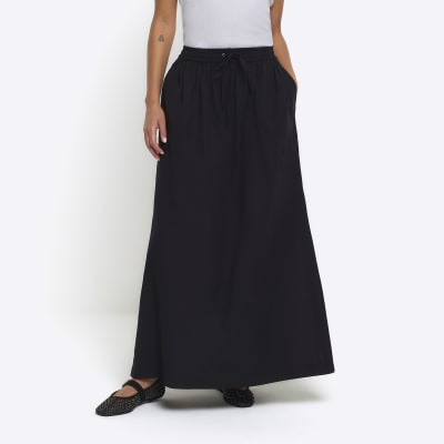 Black Elasticated Waist Maxi Beach Skirt PrettyLittleThing