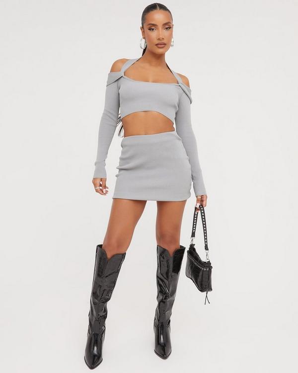 High Waist Mini Bodycon Skirt In Grey Knit EGO