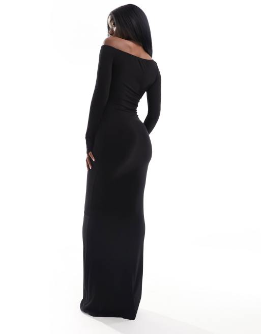 ASOS DESIGN off shoulder maxi dress with front cut out in black