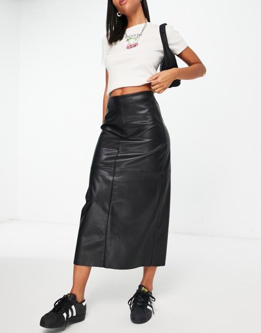 ASOS DESIGN faux leather maxi skirt with front split in black