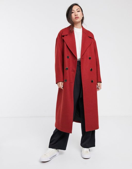 Selected Femme longline oversized coat in red