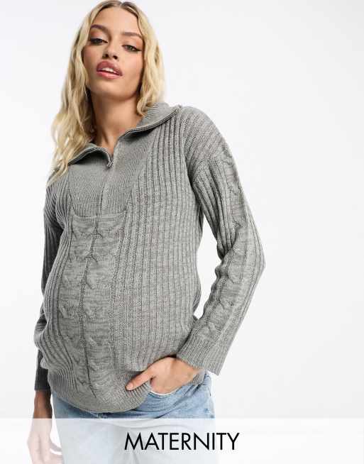 Wednesday s Girl Maternity half zip cozy sweater in gray