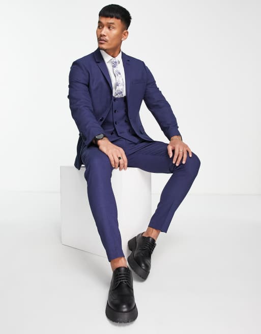 ASOS DESIGN wedding super skinny suit jacket in navy micro texture
