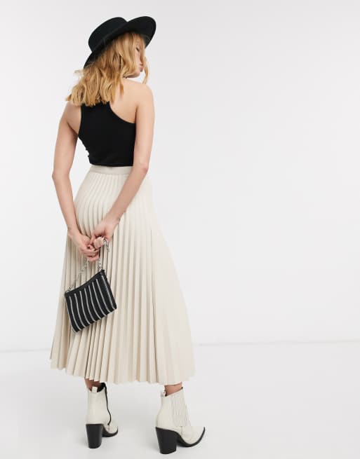 Topshop faux leather pleated midi skirt in cream