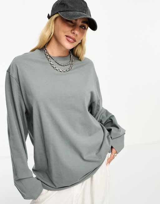 Long sleeve baggy tops clearance, Women Plain Long Sleeve Oversize Crew Neck T shirt Dress Baggy clearance