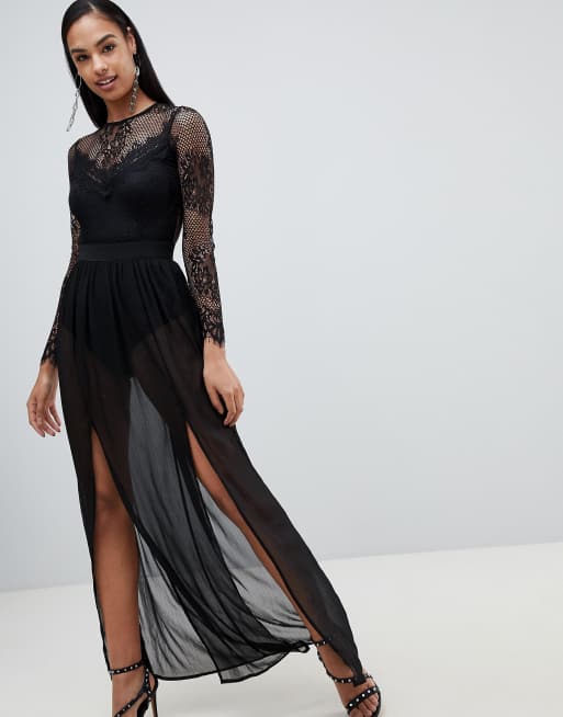 Long sleeve double split maxi dress clearance, Women s Strappy Plunge Double Split Maxi Dress Boohoo UK clearance