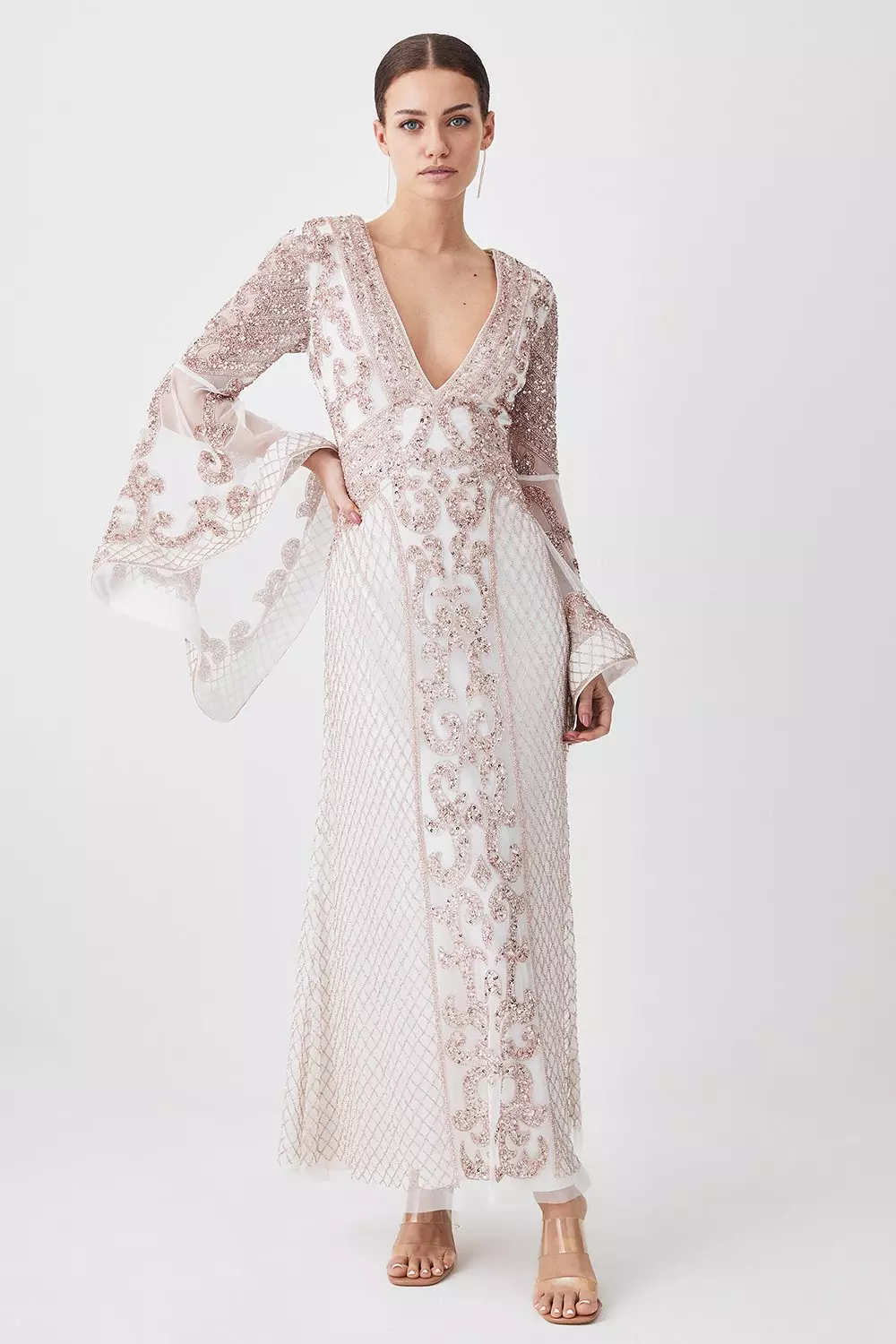 Long sleeve kimono maxi dress clearance, Petite Embellished Kimono Sleeve Beaded Maxi Dress Karen Millen clearance
