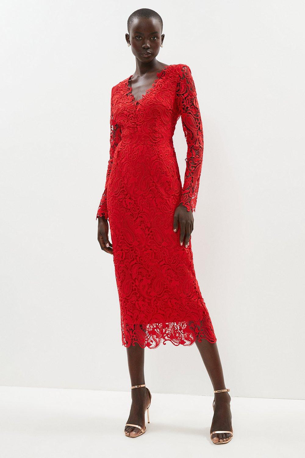 Dresses Paisley Lace Long Sleeve Midi Pencil Dress Coast