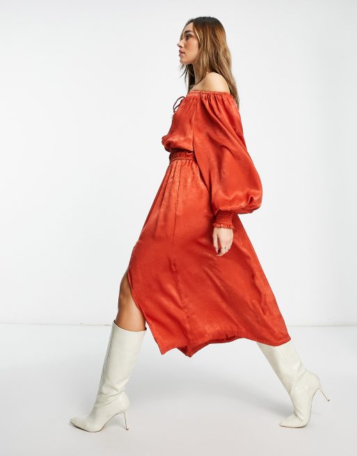 Long sleeve midi day dress clearance, River Island balloon sleeve midi dress in red ASOS clearance