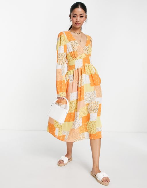 ASOS DESIGN long sleeve mini dress in patchwork floral print with