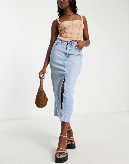 Mango jupe en jean clearance, Jupe longue fendue en jean denim avec poches Taille S Couleur bleu clearance