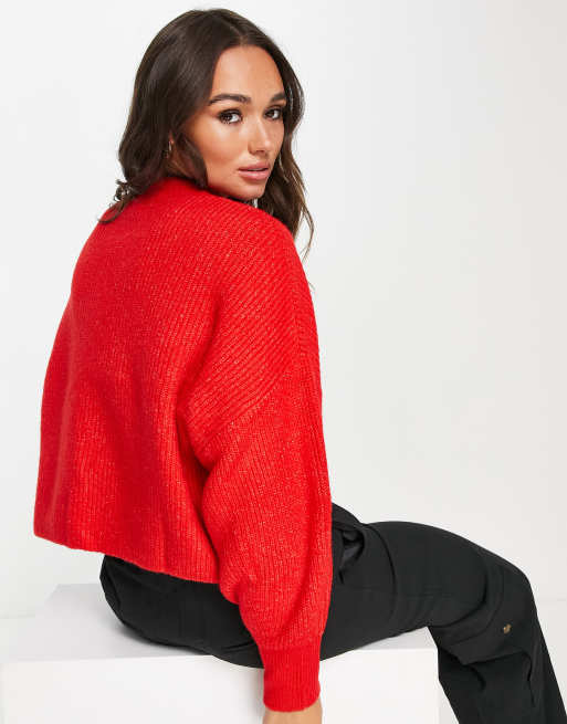 Mango red sweater clearance, Mango Ribbed Red Sweater with Zip Size S clearance