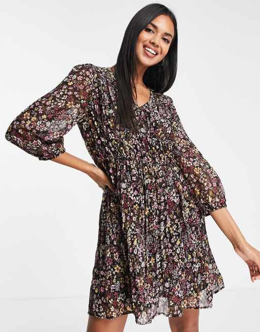 Mango Robe courte en mousseline manches 3 4 et imprim floral