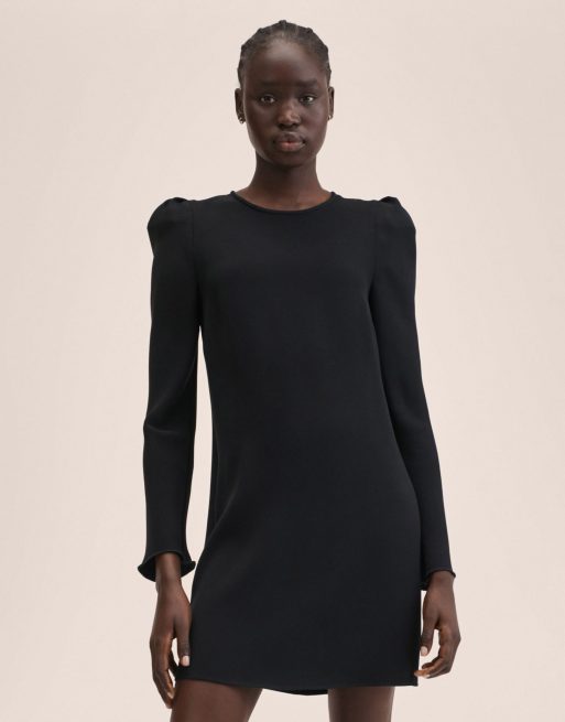 Mango Robe droite courte manches longues et d coupe au dos Noir