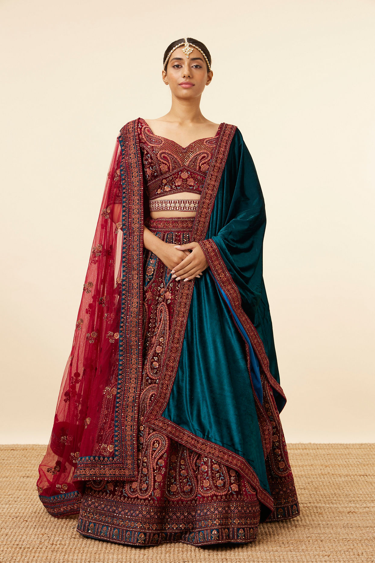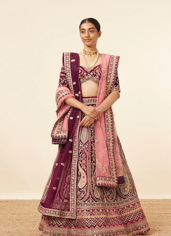 Wine Velvet Bridal Lehenga