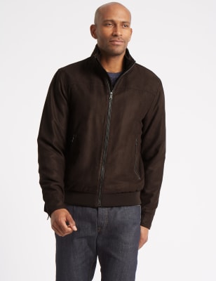 M S Mens Collezione Faux Suede Jacket Size XXL chocolate zip up