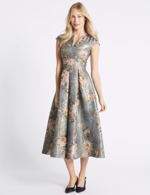 Marks and spencer jacquard dress clearance, Satin Jacquard V Neck Midi Tea Dress clearance