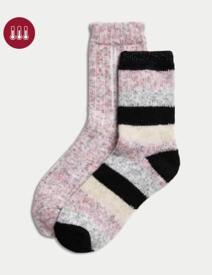 Marks and spencer ladies thermal socks clearance, 2pk Striped Max Warmth Thermal Boot Socks M S HK clearance
