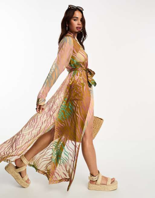 Miss Selfridge beach burnout ombre zebra maxi belted kimono ASOS