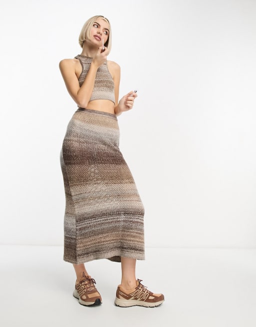 COLLUSION knitted racer tank top and maxi skirt in ombre brown co